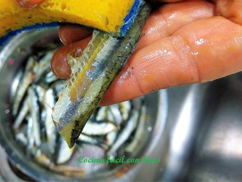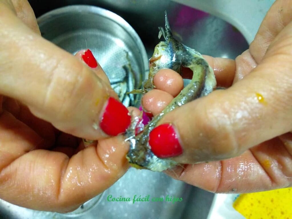 • Tercer paso: limpiar las anchoas y meterlas en aceite
