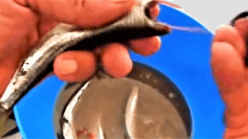 • Cogemos la anchoa, la ponemos debajo del grifo, abrimos la anchoa por el lomo, con ayuda del pulgar haciendo suaves movimientos de adelante y atrás, hasta separar los dos filetes de la espina.
