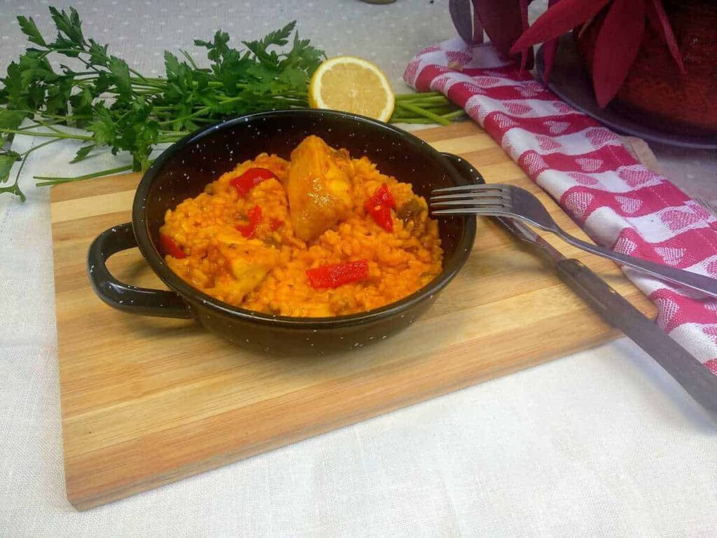 El arroz con pollo es mi receta para días con prisa, o cuándo estoy muy cansada y no tengo tiempo para preparar platos más elaborados. Nos permite trabajar menos en la cocina, solo utilizo un recipiente, mi paellera, o una sartén. Y es una receta rápida con muy buen resultado. Con la ventaja de que es un plato muy completo; arroz, pollo y verduras. Es decir, hidratos, proteínas y vitaminas.