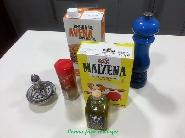 No te preocupes es muy fácil, se hace también con un roux de harina y aceite cocinado a fuego lento con leche de avena o de soja (personalmente me gusta más el sabor con leche de avena, porque la de soja le da un sabor más fuerte).