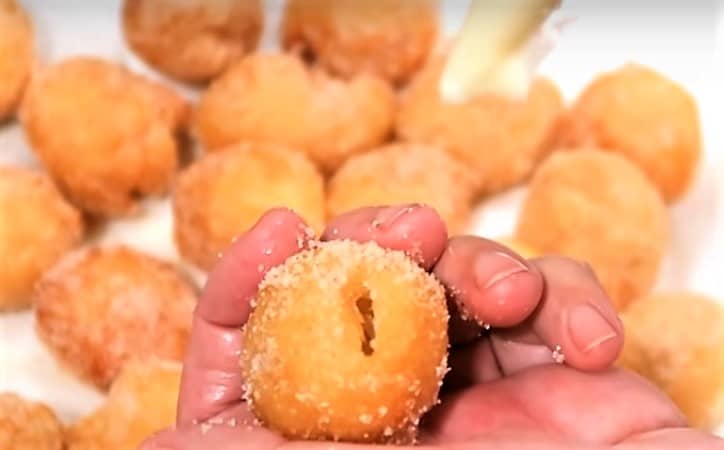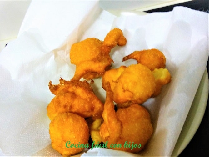 - Cuando estas friendo los buñuelos, no te asustes, cuando veas que parece que los buñuelos explotan. Tienen que abrirse, para que salga la parte cruda interior y dejen hueco dentro.