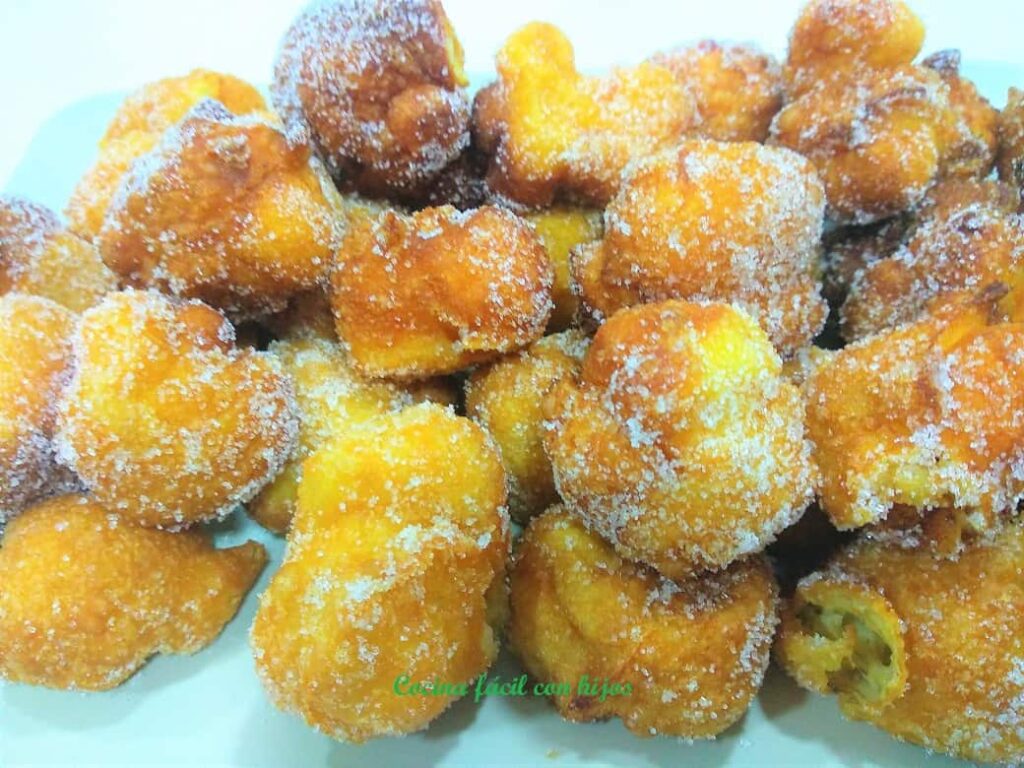 En Sevilla y Granada se tomaban cubiertos de miel. Y esta forma de hacerse se adoptó como propia por los gitanos. Se pueden comer también sin rellenar, tan solo espolvoreados con azúcar y canela, entre los buñuelos dulces, destacan los rellenos de nata montada, de crema pastelera, de crema de queso, de chocolate…, es decir que los puedes rellenar a tu gusto.