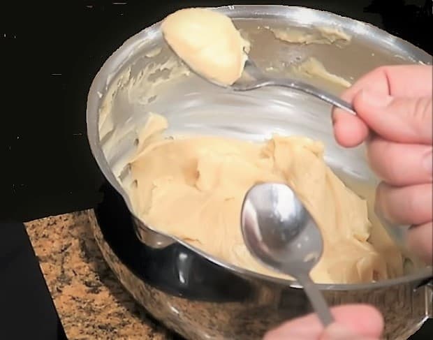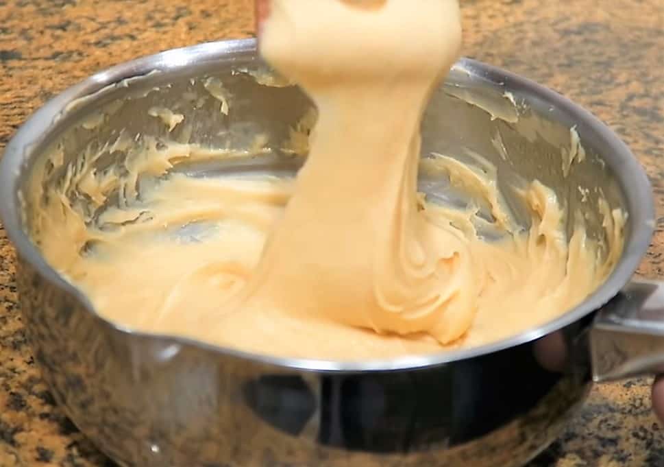 Paso 4 de la receta para hacer la masa de los buñuelos rellenos de nata
