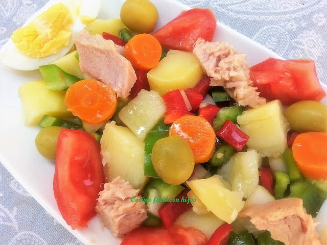 Una rica ensalada de legumbres, verduras, y pescado. Un plato con personalidad, completo y saludable.