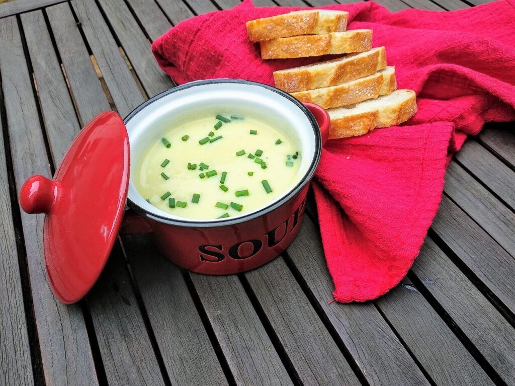 Crema de calabacín con tejas de queso