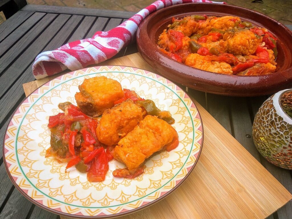 Es una receta muy sencilla, que consiste en bacalao desalado cocinado con verduras, aceite de oliva y ajo. Con el resultado de un plato con un sabor extraordinario.