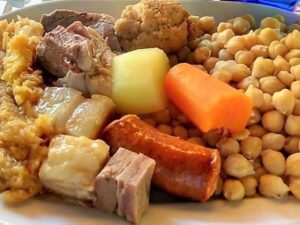 Un plato completo, con legumbres, verduras, carne, embutidos. con un caldo potente y sabroso, que se emplea para hacer sopa. Una receta casera, que tiene que estar presente en nuestra mesa por su sabor y calidad. Y por último señalar que es un plato económico y del que se puede aprovechar todo si hay sobras.