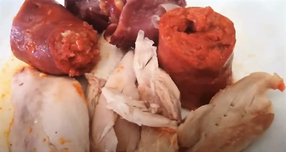 • Tercer vuelco: La carne y los embutidos, acompañados de rodajas de cebolleta cruda, (opcional)