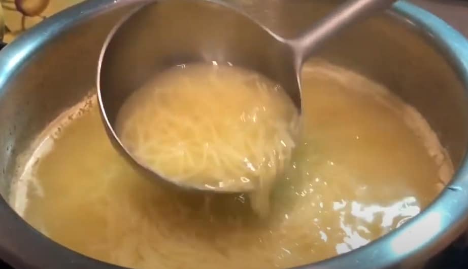 • Primer vuelco: Sopa hecha con el caldo del cocido y unos fideos