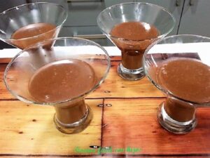 - Cuando ya está hecho lo servimos en las copas y ponemos papel film para que no se forme una capa dura arriba.