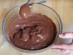 - Cuando está hecho lo ponemos en un recipiente de cristal con papel film para que no se forme una capa dura arriba.