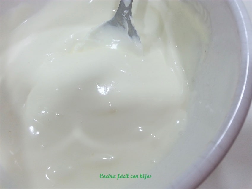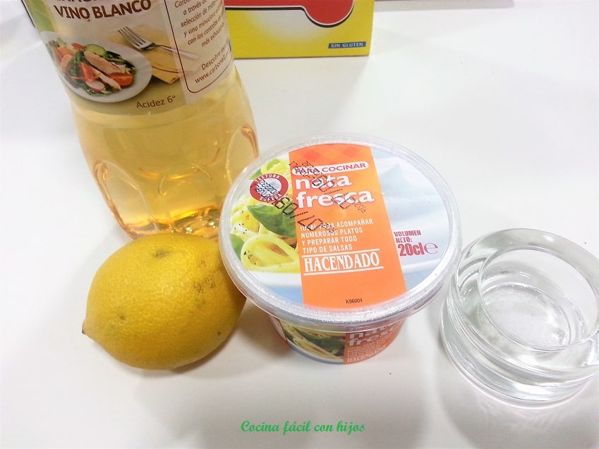 • Ponemos la nata fresca, el limón, el vinagre y la sal en un bol, mezclamos revolviendo con una cuchara.