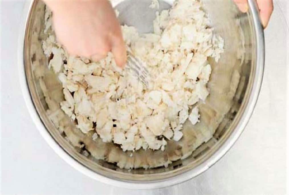 - Ponemos los dos quesos en un bol y los aplastamos con un tenedor