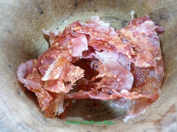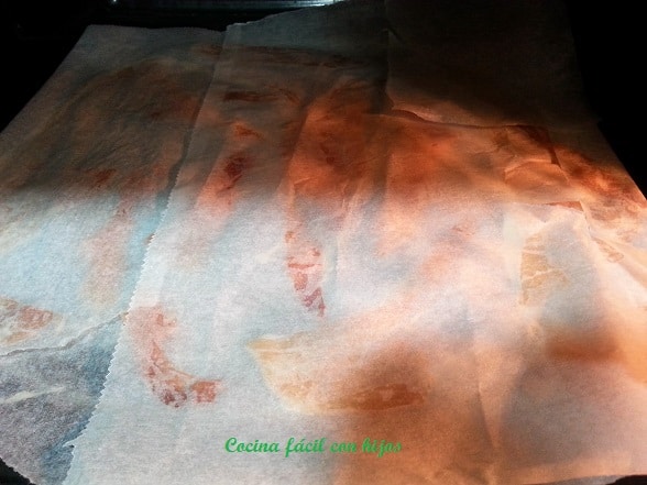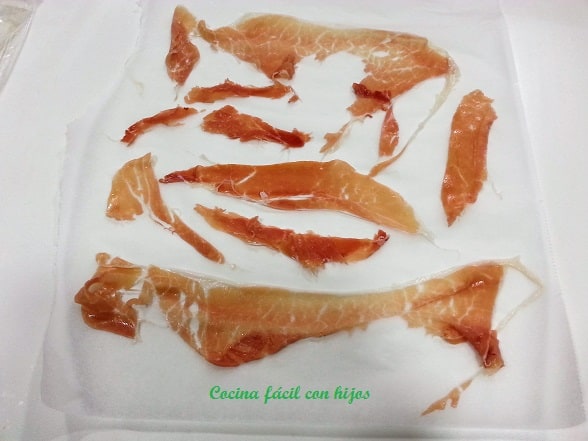 • Lo hago con dos lonchas de jamón serrano que pongo entre dos hojas de papel de horno,