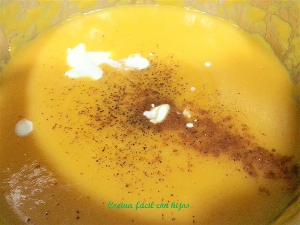 • Añadimos la pimienta y la nata, o la crema de leche ideal o el queso parmesano (según el ingrediente que hayamos elegido), volvemos a batir y rectificamos de sal.