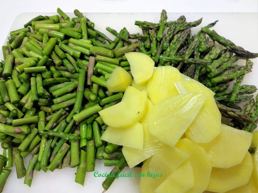 - Cortamos las puntas de los espárragos (unos 3 cm.) y se reservan.