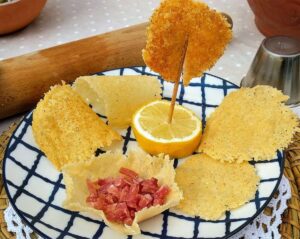 • Como aperitivo presentando el crujiente de queso solo e incluso haciendo unas graciosas piruletas.