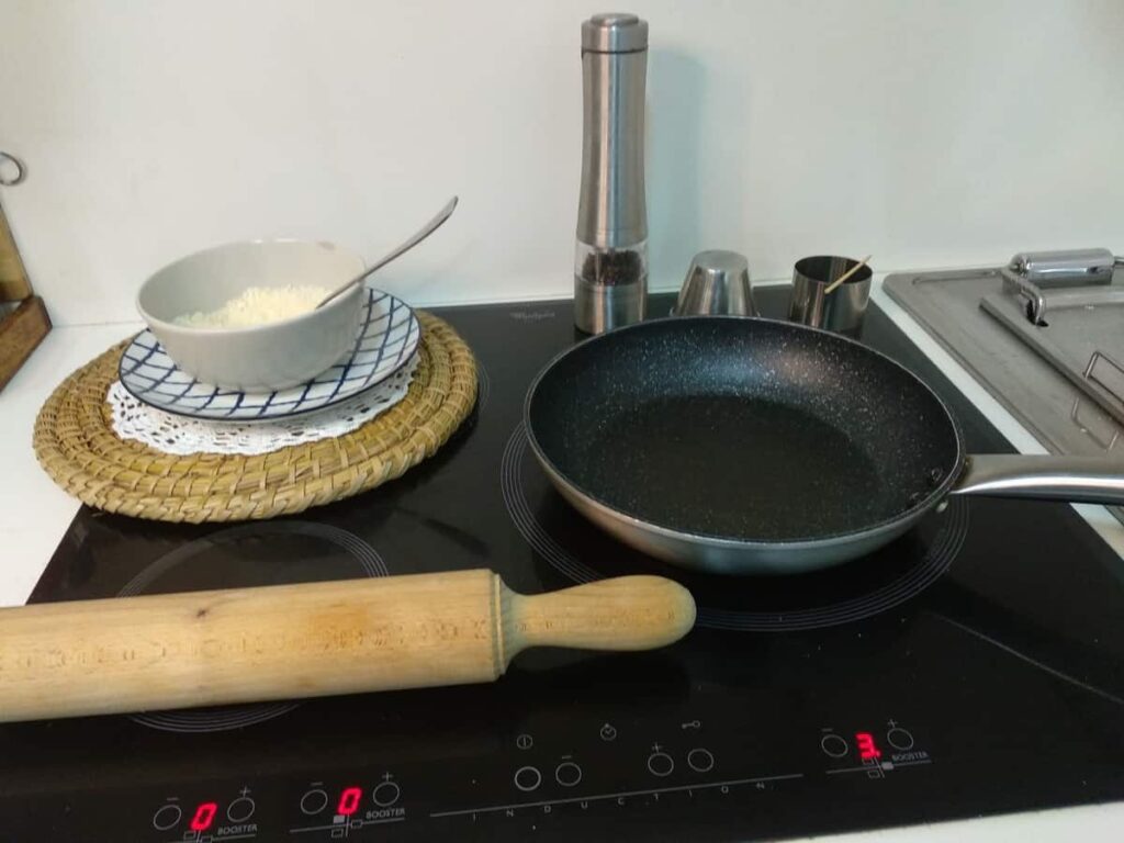 • Calentamos una sartén antiadherente.