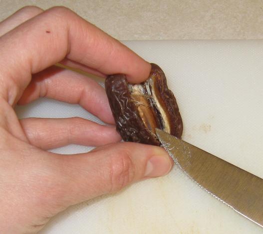 • Se deshuesan los dátiles con ayuda de un cuchillo,