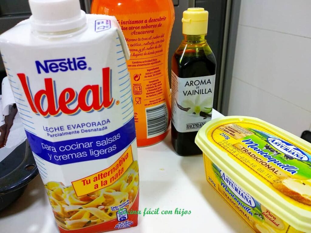 - Añadimos la vainilla y el azúcar poco a poco, vamos removiendo, añadimos la leche evaporada poco a poco hasta conseguir una crema espesa.