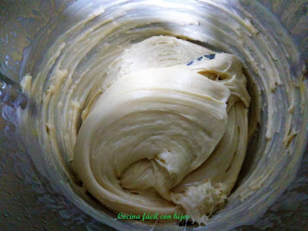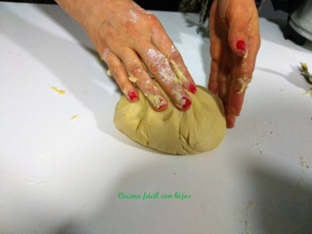 - Repetimos la misma operación con el resto de mantequilla. Nos debe quedar una masa perfecta, si vemos que está demasiado pegajosa añadimos un poquito más de harina.