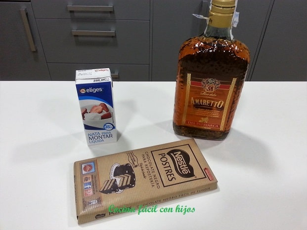 - Troceamos el chocolate. Calentamos la nata, que tiene que tener más de un 35% de grasa, antes de que hierva la apartamos del fuego.