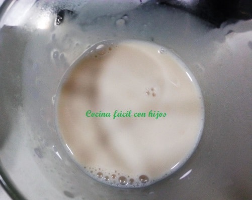 - En un recipiente batimos los huevos, añadimos la leche con la levadura, añadimos el azúcar restante.