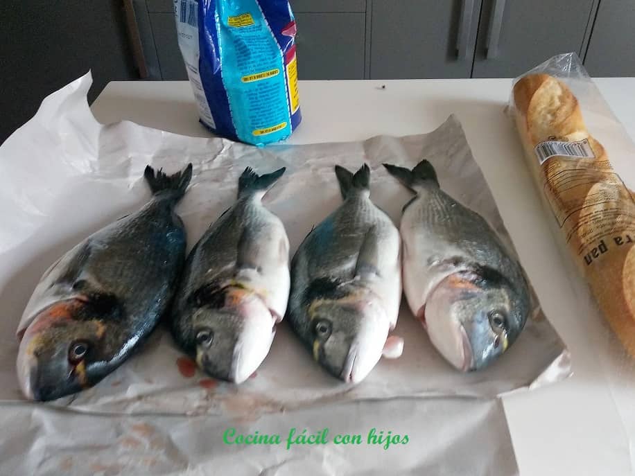 Dile al pescadero que son para hacerlas a la sal, y que nos quite únicamente las tripas. En casa las vamos a limpiar, pasando las doradas bajo el grifo y dejando que escurran toda el agua.