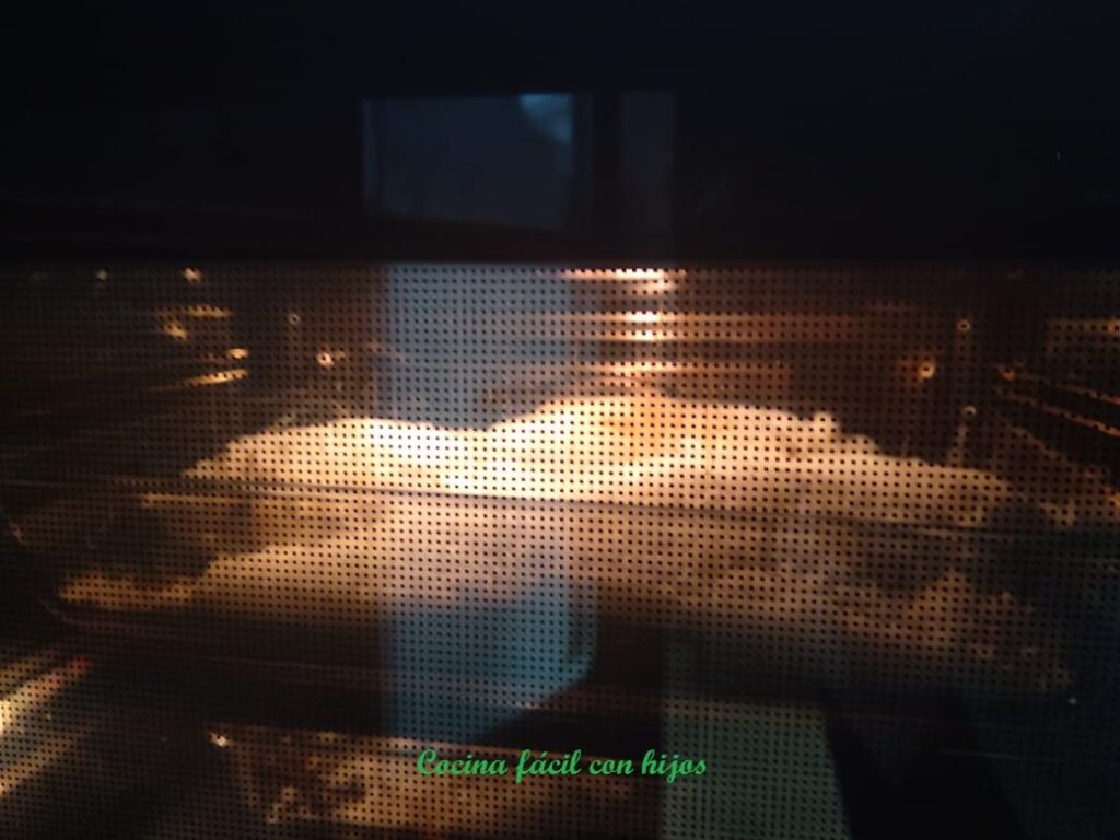 • Metemos la fuente en la zona media del horno, previamente calentado a 200 º con calor arriba y abajo, durante 25 minutos aproximadamente.