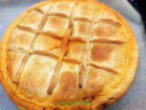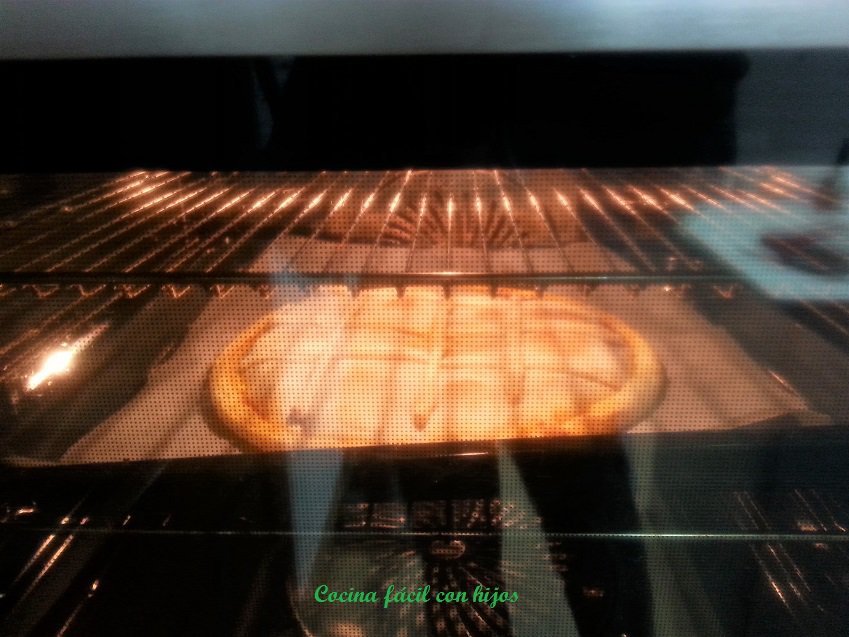 - Lo metemos al horno a 200º con calor arriba, abajo y aire si lo tenemos, hasta que esta dorada y el hojaldre bien hecho.