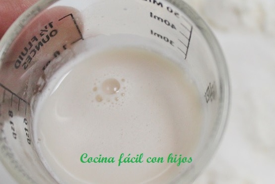 - Dejamos reposar la levadura 2 minutos y removemos con una cuchara hasta que esté completamente disuelta.