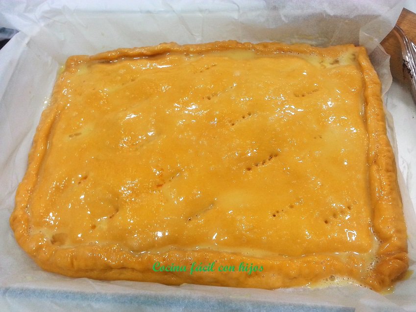 - La pincelamos con huevo y la pinchamos con un tenedor para que salga el vapor al hornearse.
