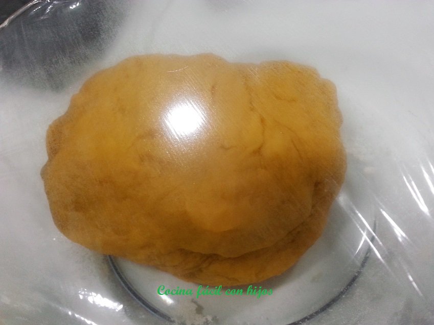 - Dejamos reposar esta bola 10 minutos en un bol tapado con papel film.