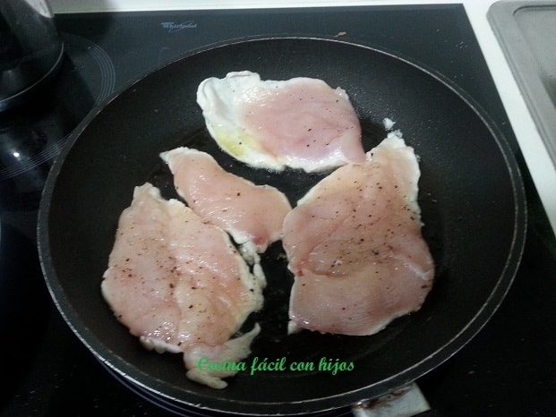 • Salpimentamos los filetes de pollo y los hacemos a la plancha.