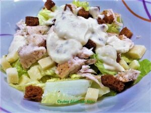 Estoy segura, de que conoces la ensalada César ¿no?, es una de las ensaladas más famosa del mundo. Deliciosa, clásica tanto en verano como en invierno, crujiente gracias a sus picatostes y al pollo.