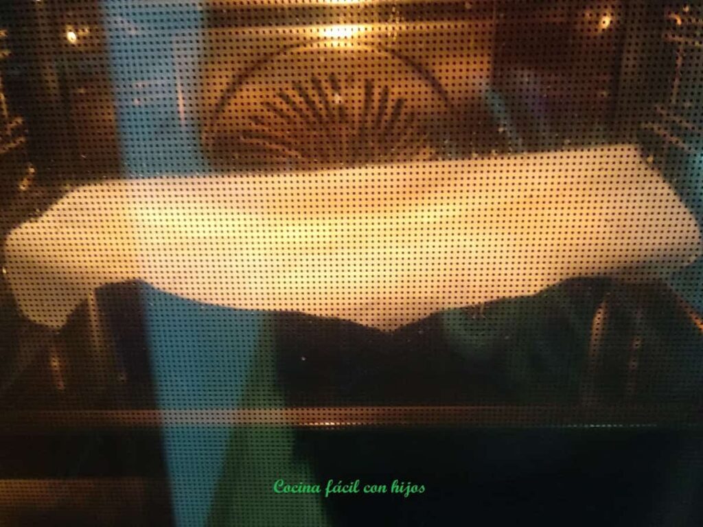 - Cocemos el molde en el horno, que previamente hemos calentado a 170º, durante 45 minutos. A mitad de cocción cubrimos el molde con una hoja de papel de horno.