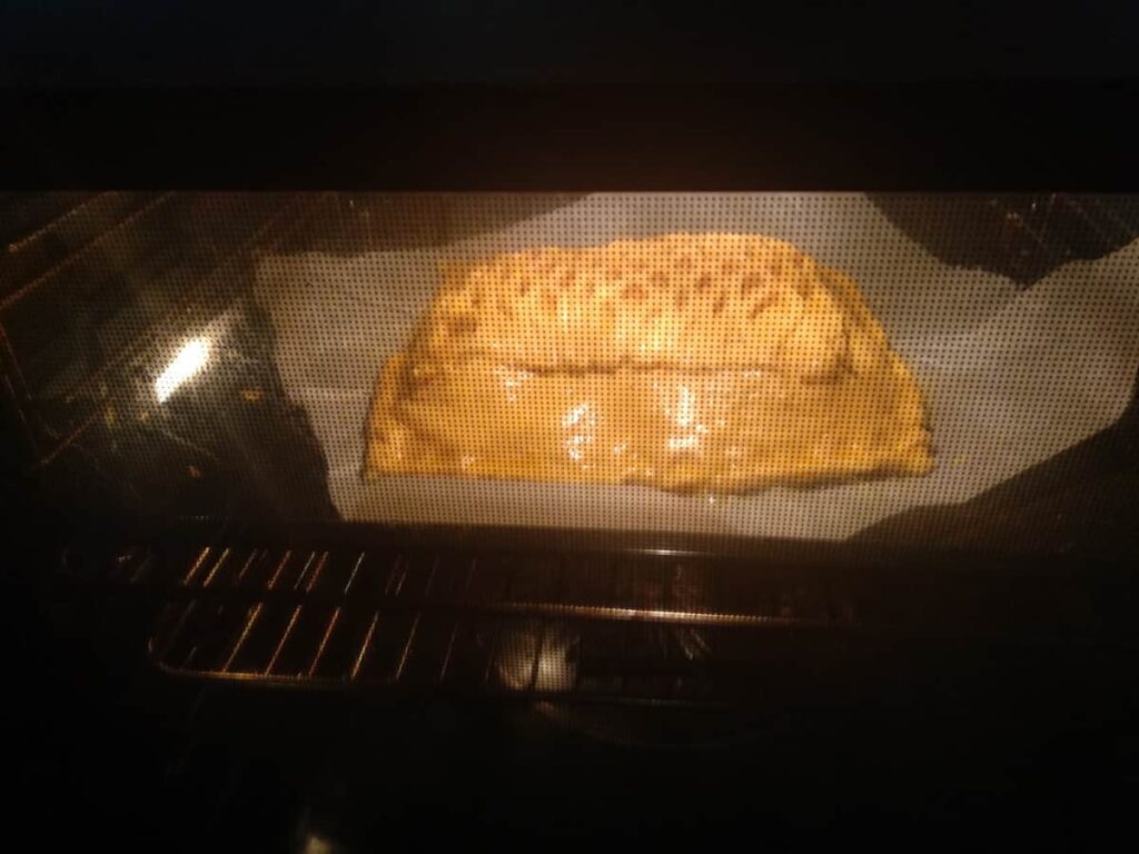 • Ponemos el hornazo en la zona central del horno. Y Horneamos durante 30 minutos a 220ºC, con calor arriba y abajo, pues el hornazo de Salamanca debe quedar bien dorado.