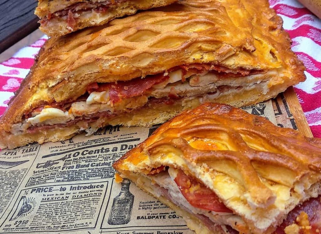Es una masa de pan rellena de embutidos ibéricos, típica de Salamanca, aunque se prepara de forma parecida en muchas más provincias.