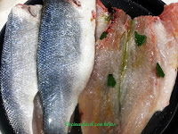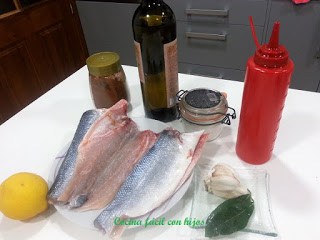 • Metemos la bandeja, con las lubinas abiertas, dentro del horno unos 10 o 15 minutos dependiendo del horno. Aprovechamos para hacer el sofrito.