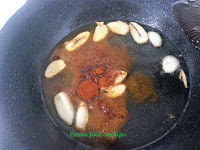 • Ponemos una sartén con aceite de oliva en una sartén a fuego bajo y sofreímos en él, los ajos que previamente hemos laminado. Cuidado que no se quemen porque dejan mal sabor.