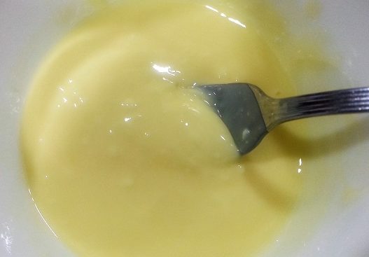 Se consigue este punto, batiéndola a mano con una cuchara o tenedor hasta conseguir una textura intermedia entre sólida y liquida. Por lo tanto, lo que tenemos que conseguir es convertirla en una crema parecida a un cosmético. Que es lo que se denomina punto de pomada.