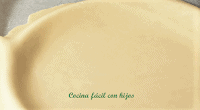 • Si el molde es de silicona, extendemos la masa encima del molde en el que vayamos a cocinarla, y con ayuda de la mano vamos pegándola a las paredes del mismo y dándole forma. Si no es de silicona espolvoreamos con harina, antes de este paso.