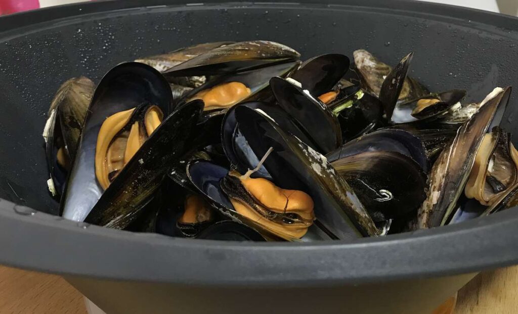 - Comprobamos, si se han abierto los mejillones y el punto de cocción, retiramos los que estén en su punto.