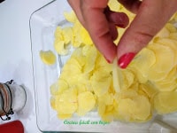 • Pelamos las patatas en rodajas lo más finas posibles.