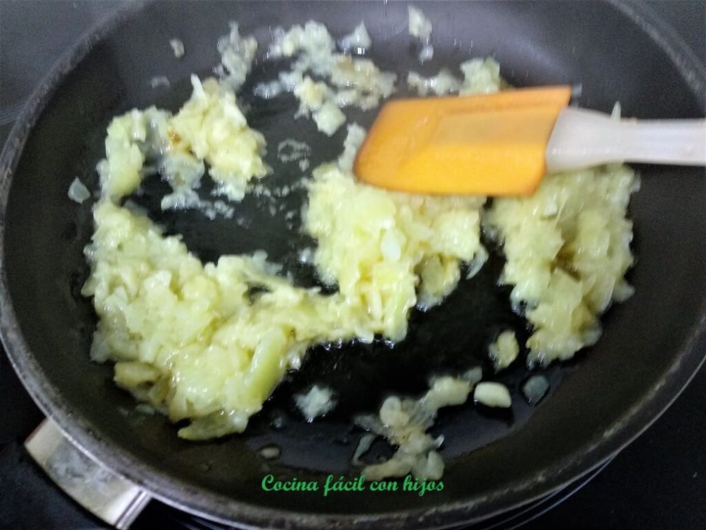 1.-Los podemos freír por separado a fuego lento hasta que queden pochados.