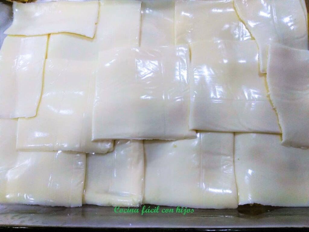 • Cubrimos las patatas con las lonchas de queso.