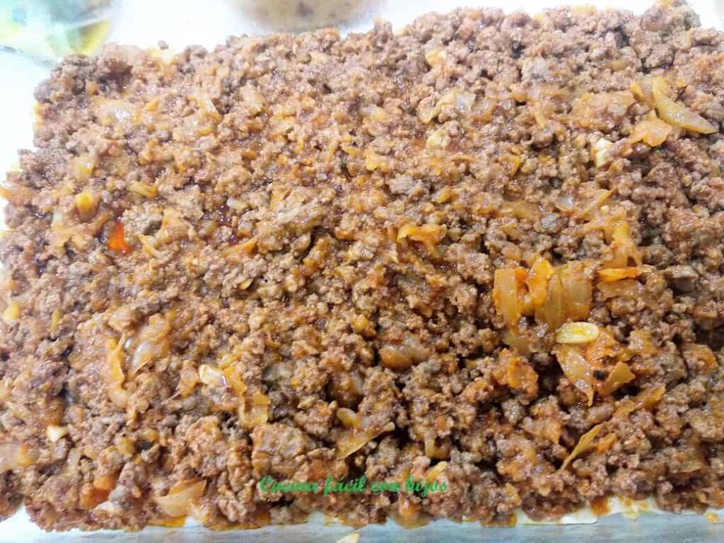 • Ponemos otra capa con la carne picada y cubrimos esta con el calabacín.