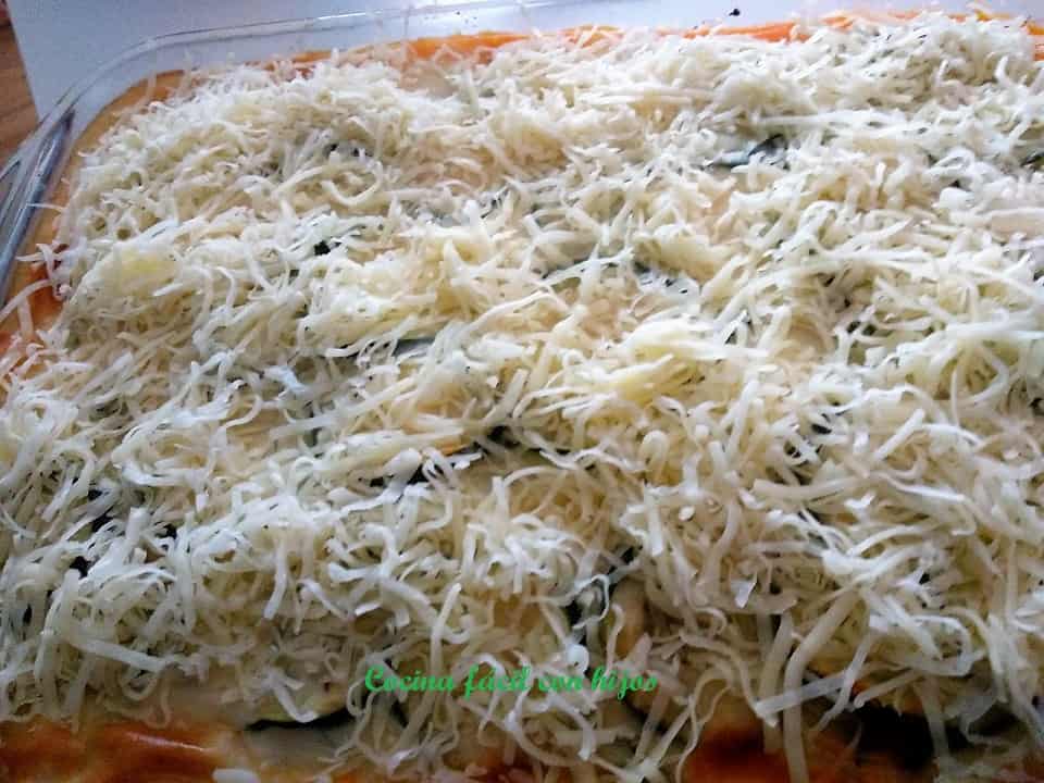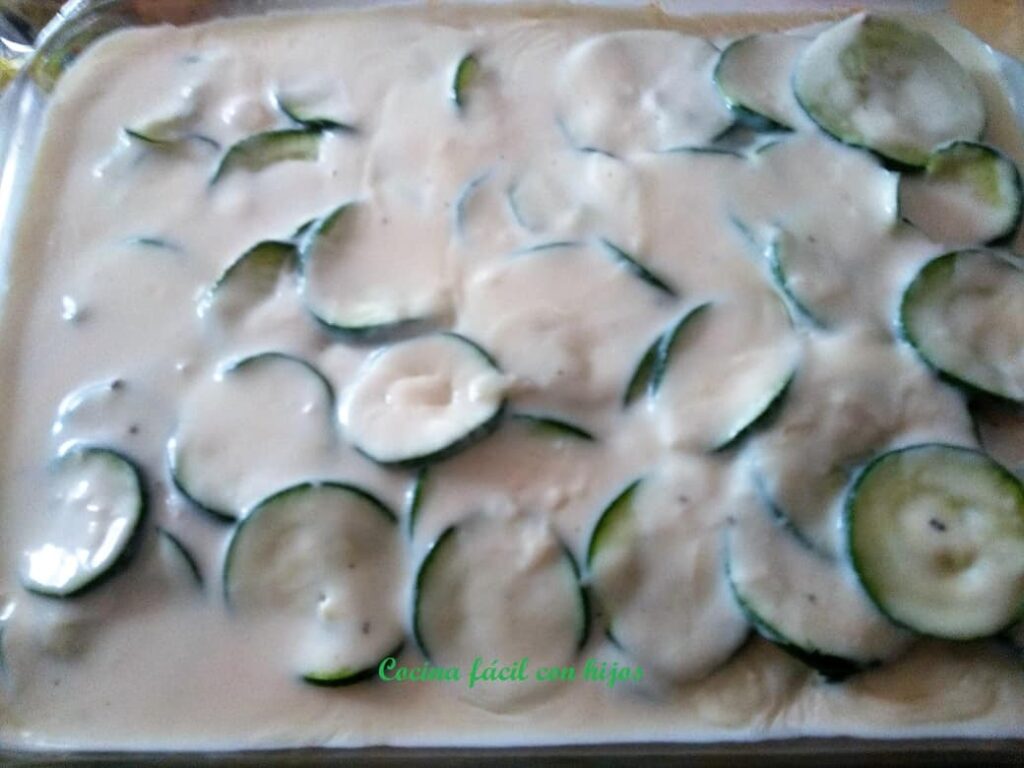 • Ponemos sobre la carne todo el calabacín que tenemos, bien extendido