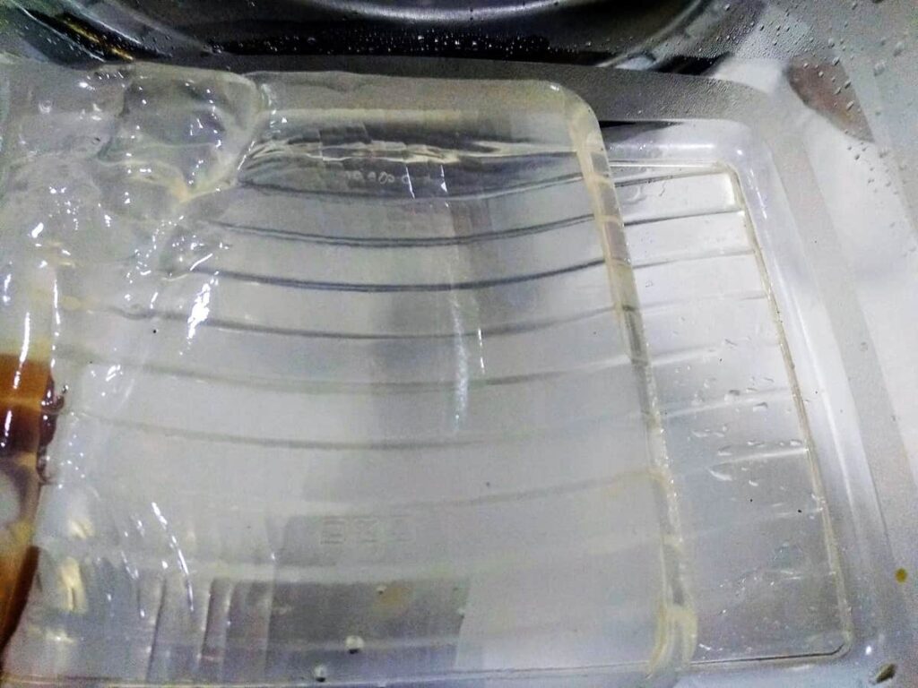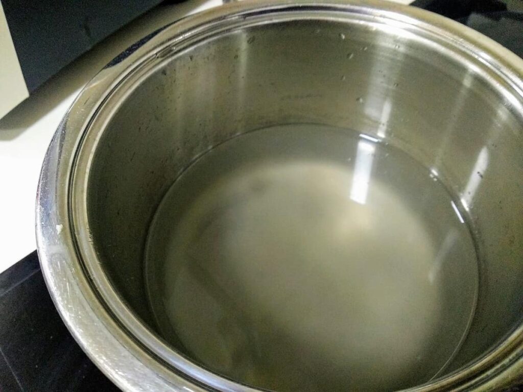 • Cuando está a punto de hervir, lo retiramos del fuego. Removemos y lo ponemos en un recipiente, hasta que se enfríe.