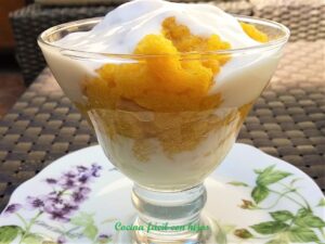En esta receta vamos a elaborar una deliciosa mousse de mango, con crema de yogur, sin azúcar, sin nata, y sin gelatina.